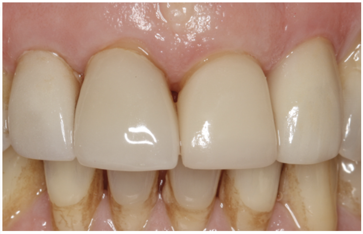 The patient returned again, and the provisionals were removed and the CAD/CAM crowns tried in intraorally to verify margins and contacts. The restorations were adhesively cemented, and the patient was very pleased with the color and even proportions of his smile (Figure 24).