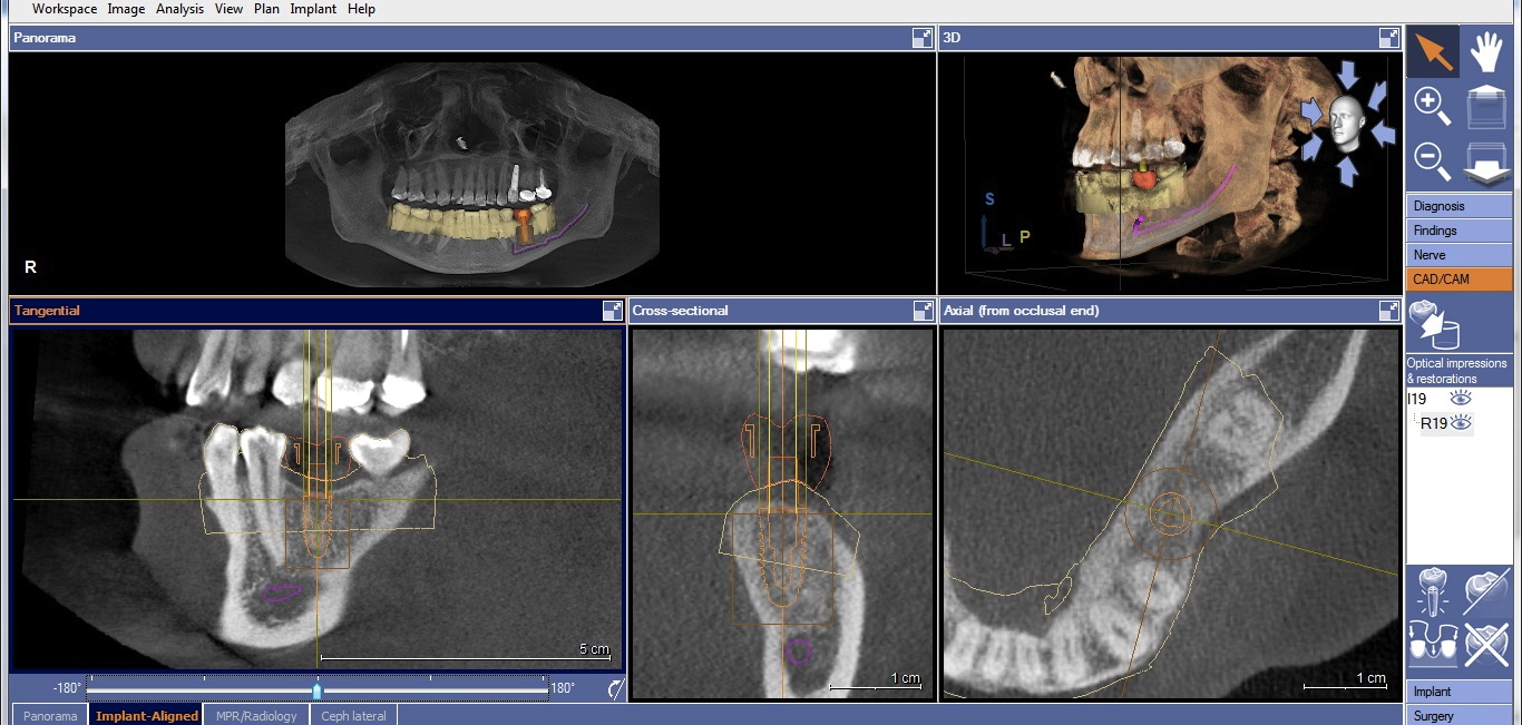 CBCT is an accurate tool for evaluating bone volume. Many CBCT scanners include proprietary digital implant planning software. There are also “open platform” software solutions that can be used with any CBCT data file. These are excellent diagnostic and planning tools and serve as the foundation of the SAFE implant protocol. Using the SAFE implant protocol is possible without direct access to a CBCT scanner or a chairside CAD/CAM system, but dentists with access to integrated CBCT-CAD/CAM systems have a simplified workflow, involving three appointments.