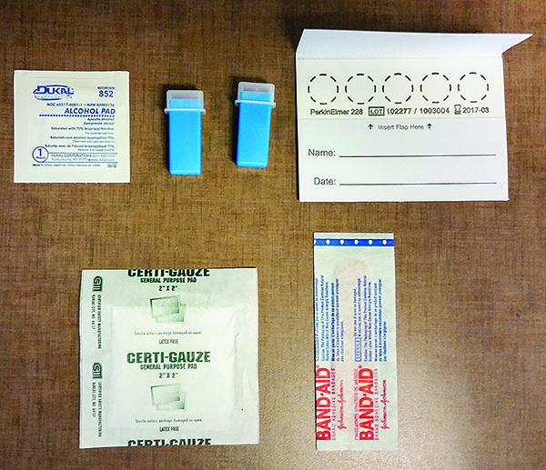 Vitamin D testing is easily accessible today. Several laboratories offer testing via dry blood spot, which is very accurate. A few drops of blood from a quick nick of the finger are placed on a filter paper to dry. Blood from a surgical site, such as a dental implant or extraction, can also be placed on the filter paper to be tested. Patients can also order a kit directly from the laboratory, and perform this test in the comfort of their home (Figure 1). Once the blood-spot sample is received by the laboratory, results are usually available in 1 week.