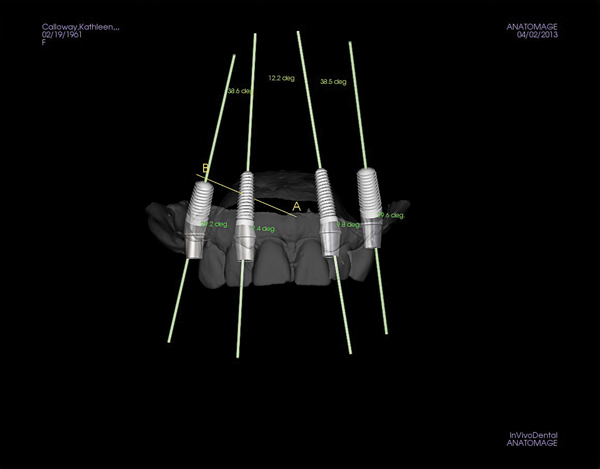 An additional advantage is that other members of the dental team can quickly and easily evaluate the plan via “cloud” computing or electronic transmission of the DICOM file, and once it is approved, the team can proceed using this information to create precise surgical guides that consider both hard tissue and optimal restoration location. Using both CBCT data and intraoral scan impression or model scans, the restorations can be previsualized and the implants placed accordingly.