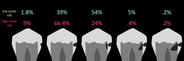 Ultimately there will always be a level of subjectivity and clinician personal bias when planning surgical treatment of a carious lesion. To provide clinicians a reference on the threshold used by other practicing dentists for surgically entering a tooth, a 2009 study from the US Dental Practice-Based Research Network surveyed 500 dentists on their thresholds for treating caries surgically (Figure 3).11 In high caries-risk patients, 66% of dentists chose to surgically treat lesions that were radiographically observed in enamel, whereas 24% chose to wait until the lesions progressed to the inner third of the dentin. In low caries-risk patients, 39% of dentists would treat the enamel-only lesion surgically, and 54% would wait until it progressed to the inner third of dentin. This survey demonstrates that most practicing dentists surgically intervene with operative treatment before likely cavitation of the enamel.