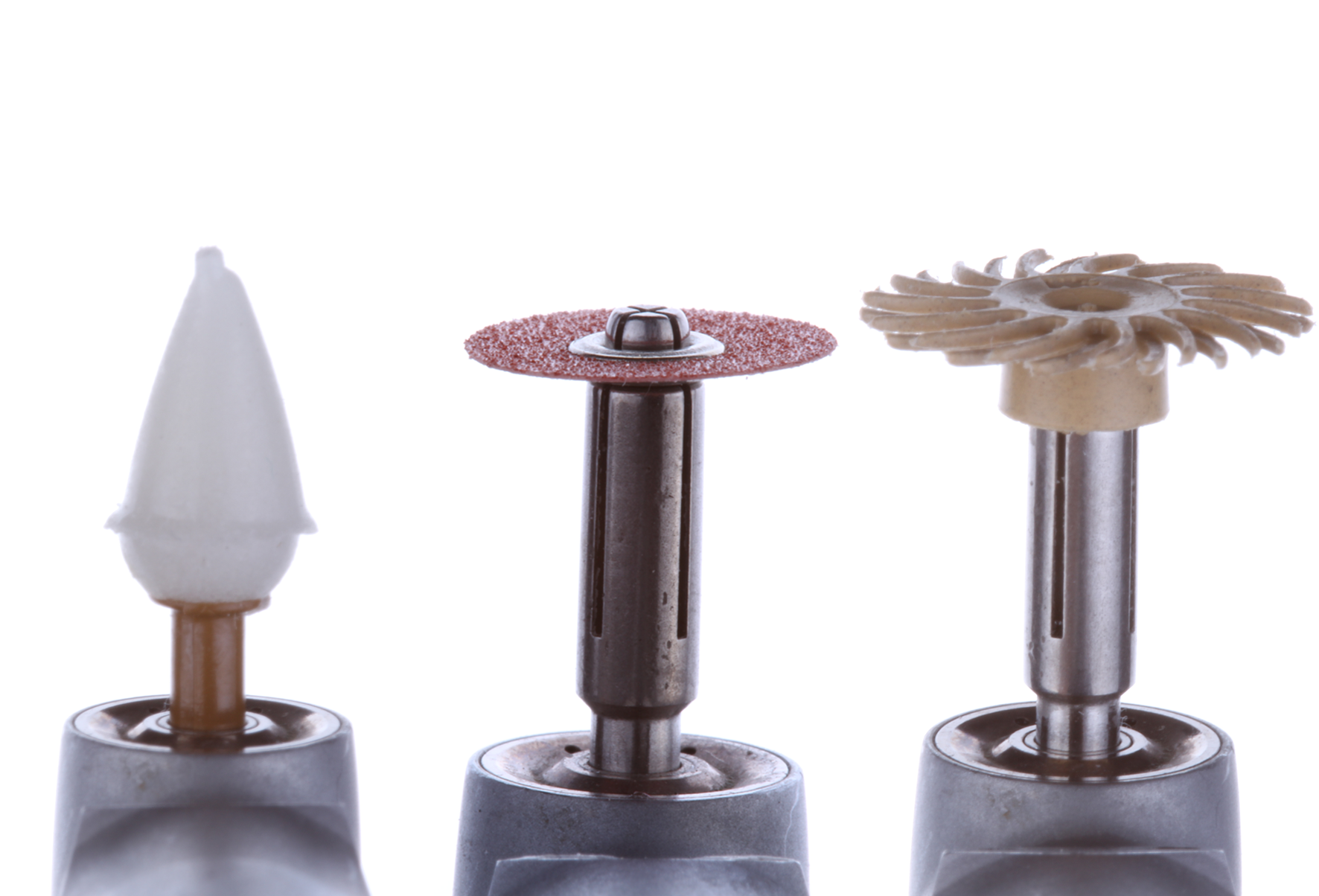 Before polishing, the restoration is typically finished with either finishing carbides or diamonds. A recent study found a 10-fold increase in roughness using a 20-grit diamond finishing bur (Ra = 2.5 µm) compared with a 30-blade tungsten carbide finishing bur (Ra = 0.25 µm).44 After the shaping and smoothing of restorations that occurs with a bur, they are then polished. There are various shapes and formulations of composite finishing and polishing tips that typically contain either aluminum oxide or diamond abrasives (Figure 12).