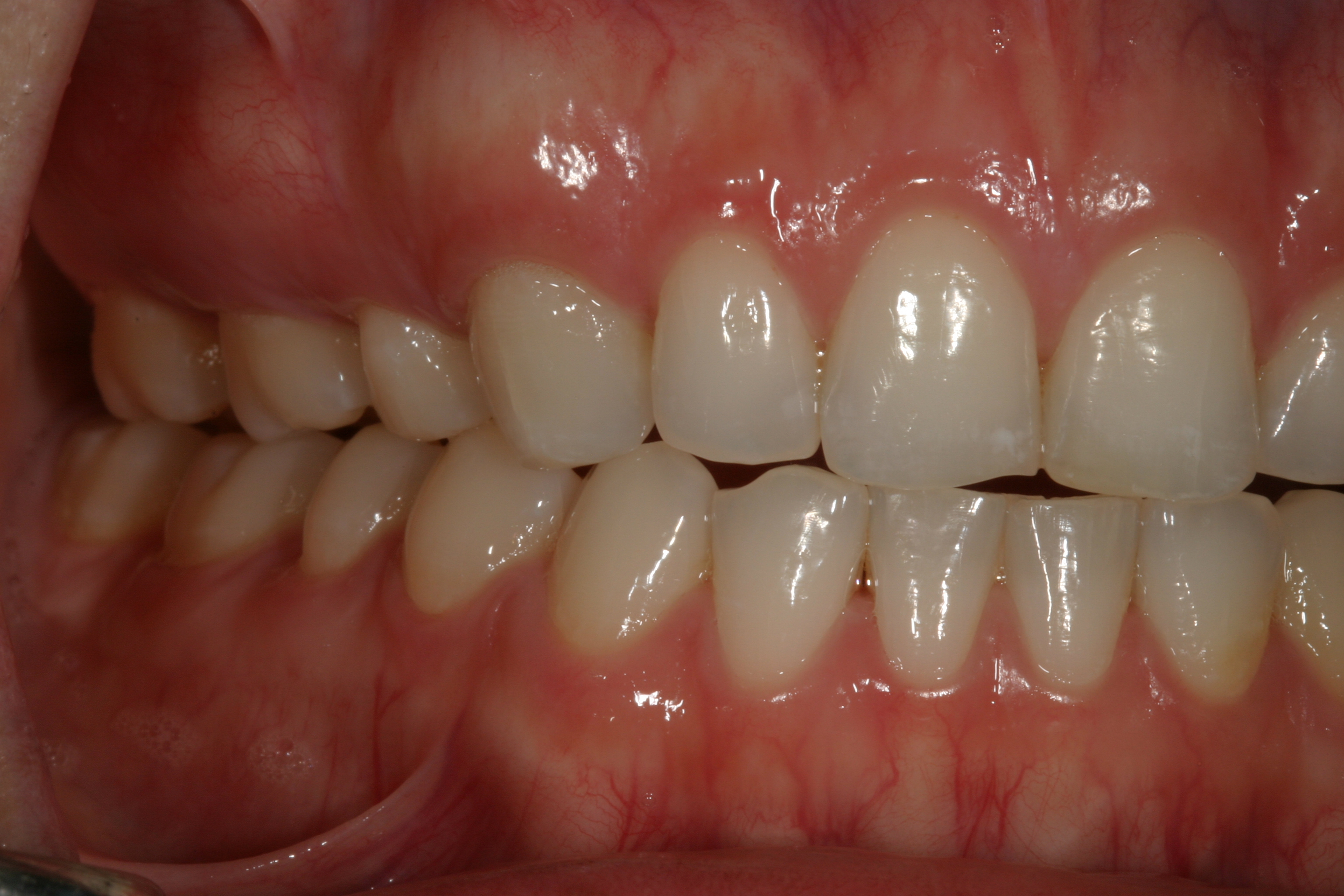 When looking at the patient’s face, the vertical facial thirds appeared normal (Figure 17 and Figure 18). Visually, her lower facial third appeared smaller, only because the teeth-to-face proportion looked small.26 It was suspected that a Le Fort I osteotomy would reduce the vertical height of the patient’s mid-face and adversely alter a positive component of her facial beauty. This proposed option of leaving the mid-face intact and addressing her dental concerns without invasive jaw surgery was very enticing to the patient. Using a minimally invasive comprehensive dentistry approach, a minimally invasive gingival crown-lengthening procedure was presented as a treatment option to reduce her vertical maxillary overgrowth. In addition, porcelain veneers would be bonded after the gingival healing. Due to its minimally invasive nature and faster treatment time, this treatment plan was chosen by the patient.