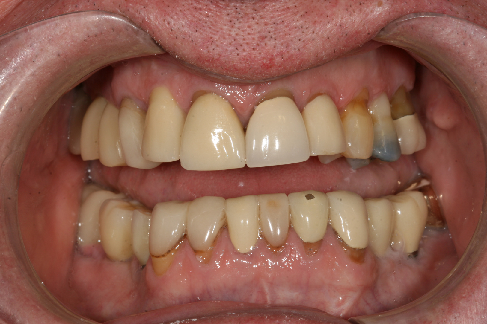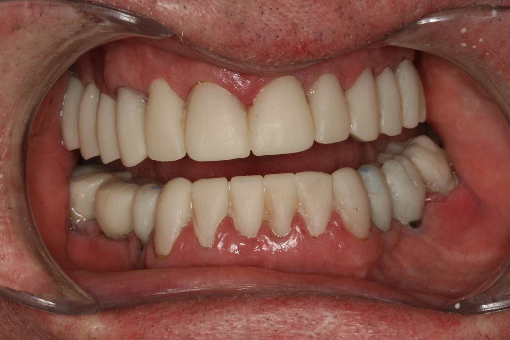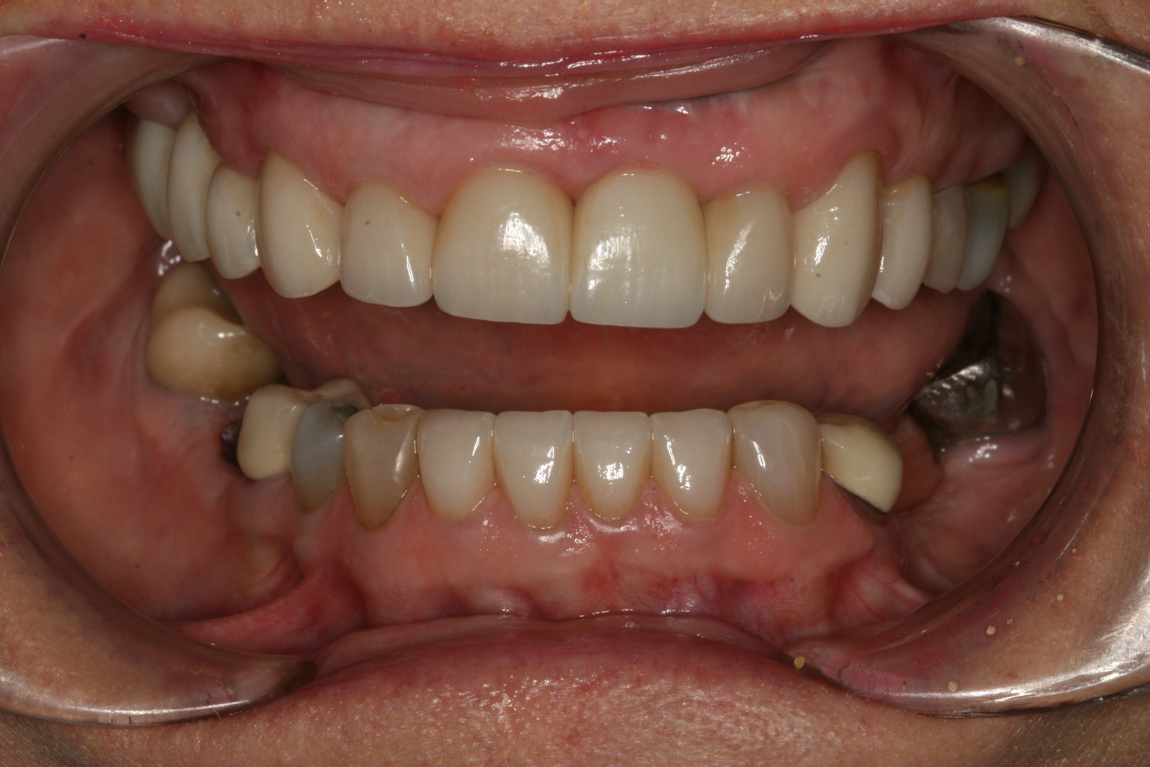 Many challenging situations can be evaluated and addressed by using the putty matrix provisional technique. Restoration of missing teeth, evaluation of questionable teeth, healing of tissues after periodontal surgery, integration of implants, and modification of occlusion are a few of the most prominent areas that can be addressed through provisionalization (Figure 6). Missing teeth can be conveniently added back by bridging gaps after extraction. Splinting periodontally involved or questionable teeth can help stabilize them while attempts at managing the destructive effects of periodontal disease are employed. Osseointegration of dental implants can be managed at all stages from placement to development of emergence profile using properly designed provisional restorations. Hard and soft tissues can be monitored for development and healing while managing occlusal forces to provide a stress-free and cleansable environment. Proper arch form can be developed when teeth are misaligned. Provisionalization can allow the restorative dentist to predictably control the outcome of a case through physical development of form and function.6