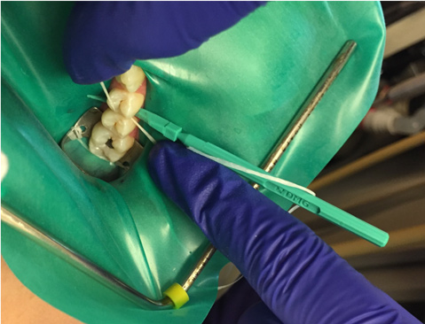 2. Place a separator to create room between the teeth (Figure 1). This can be done up to 1 week in advance of treatment.
