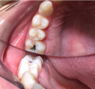 Figure 13 shows a bitewing of a 7-year-old girl with Williams syndrome who had previously required treatment under general anesthesia (GA) in a hospital setting for treatment of caries in her primary teeth. An incipient lesion on the mesial of her lower right permanent first molar, tooth No. 30, was treated more conservatively, in office, with resin infiltration, which allowed her to avoid more invasive treatment and the possible need for another GA. The lesion was arrested (Figure 14) and has been stable for over 5 years.