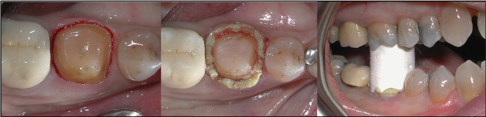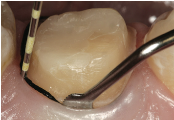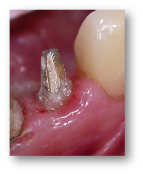 • The provisional restoration is removed, and the residual temporary cement is cleaned up. (Anesthesia may be necessary to ensure patient comfort.)