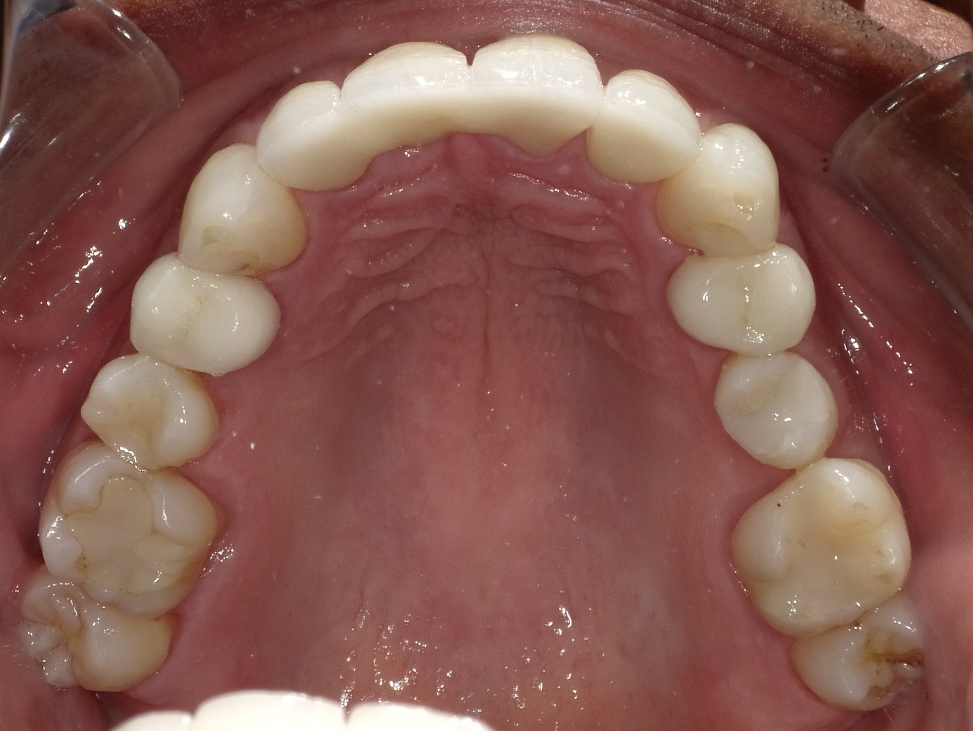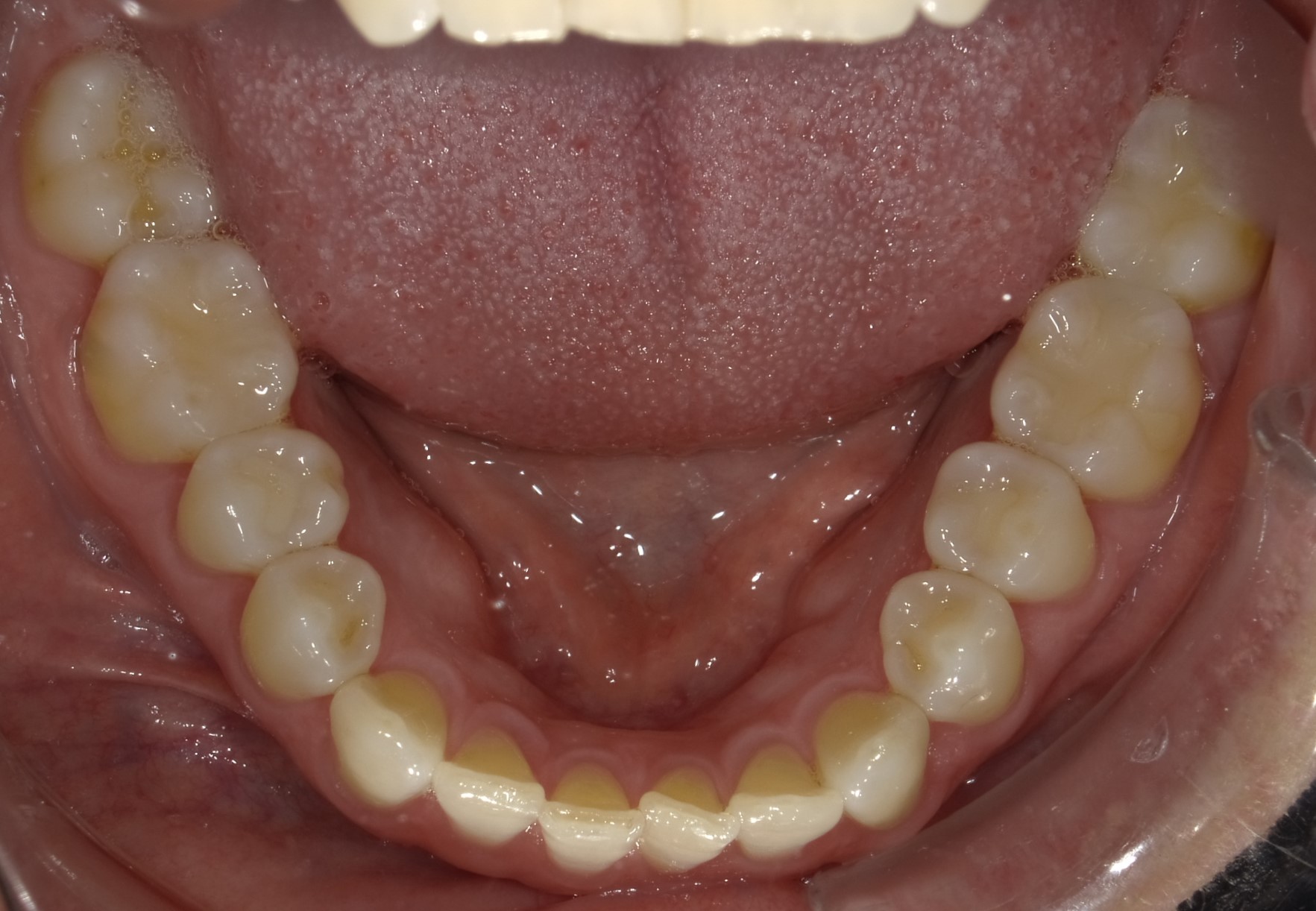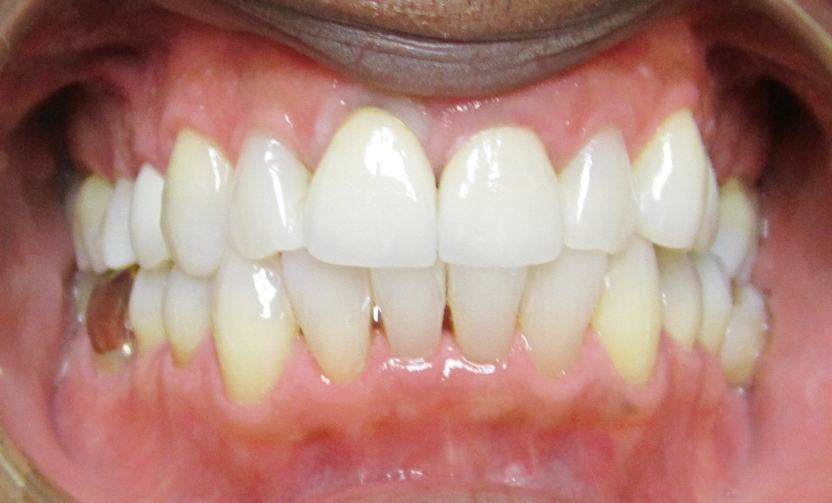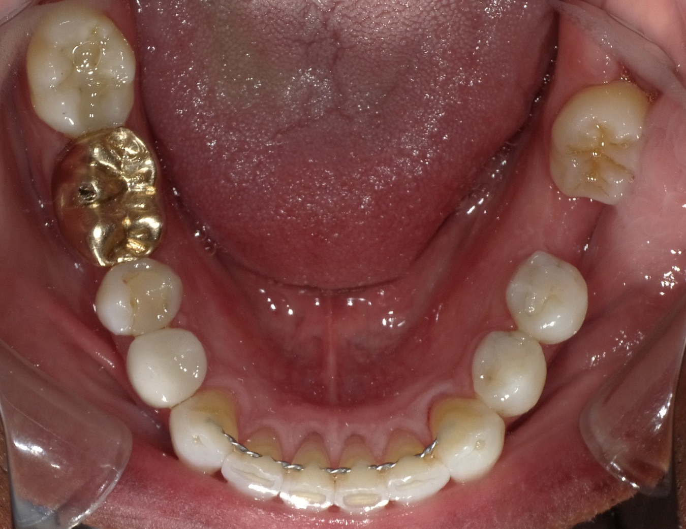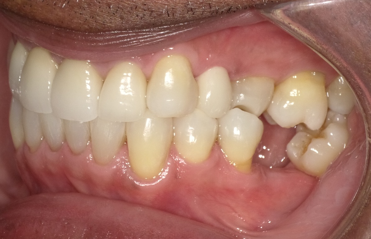 During a dental hygiene examination, aligner treatment was suggested to a patient, a 49-year-old man who presented with mild to moderate lower arch malocclusion with anterior crowding. At the time, concerns of a missing lower molar, combined with posterior and anterior malocclusion, were raised to the patient (Figure 5 through Figure 12). The patient's options included a restorative treatment with a lower missing molar, and replacement of the upper anterior arch crown restorations along with clear aligners. The patient did not wish to spend $4,000 to $5,000 on full orthodontics at that time. Once the need to remove the heavy anterior occlusion to gain better overjet for the longevity of the periodontal and restorative prognosis was explained, the patient decided to move forward with the clear aligners, limiting aligner treatment primarily on the anterior arch as an esthetic approach. To avoid losing the patient, this office decided to provide limited aligner treatment for less than $2,000 to address the anterior esthetics. Aligner treatment took longer than expected, requiring more aligners at an additional cost that was not charged to the patient. The delay in finally gaining lower cuspid rotations, along with resolving the lower anterior crowding to gain better esthetics before the delivery of the upper restorations, required over 20 aligners and took more than 15 months to complete. Patient motivation and compliance were also an issue, because the patient was required to report for numerous follow-up visits regarding aligner wear. Extended treatment meant that frequent office visits were necessary, adding additional chair time that had not been anticipated. After initial consultation, completion of the initial treatment plan (improved anterior esthetics with the replacement of upper restorations) took almost 2.5 years (Figure 13 through Figure 20).