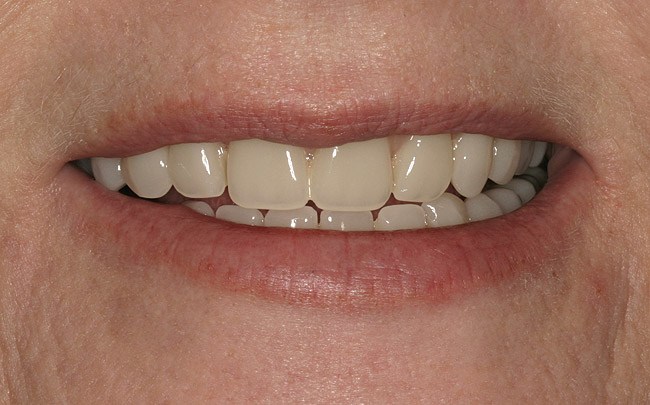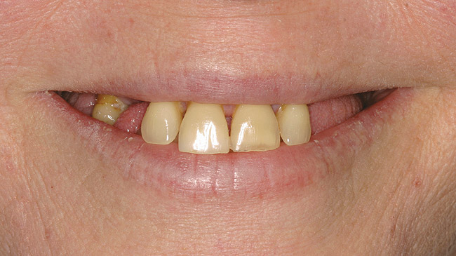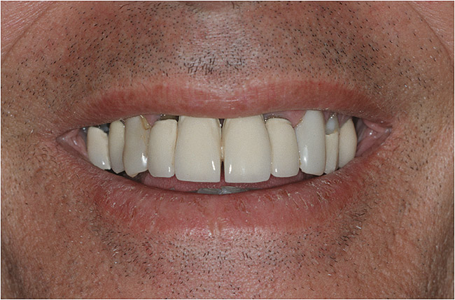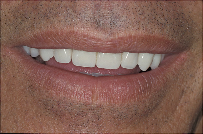 There are fundamental guidelines that must be followed when setting teeth. The teeth must be placed in the “neutral zone.” The neutral zone is defined as “the potential space between the lips and cheeks on one side and the tongue on the other: that area or position where the forces between the tongue and cheeks or lips are equal.”1 In the anterior region, this zone is close to the residual ridge, as were the original teeth. The location of the occlusal plane, the determined vertical dimension of occlusion, and horizontal maxillomandibular jaw relationships are all factors that will impact the final tooth position and, ultimately, the overall esthetics.3 These processes and techniques are beyond the scope of this article.
