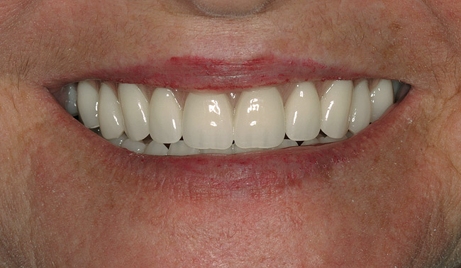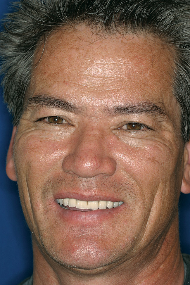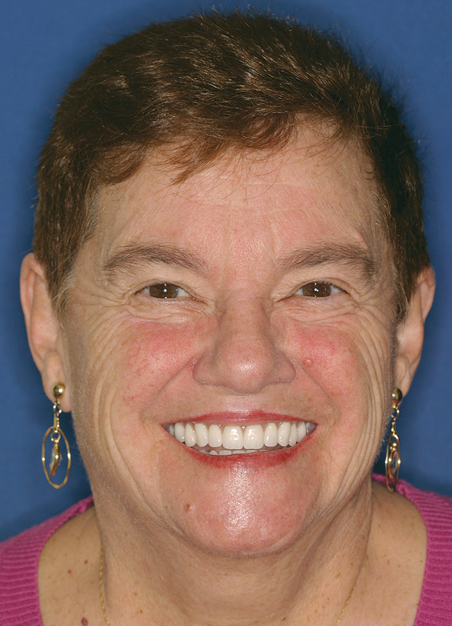 The concept of dentogenics, introduced in the 1950s, takes the patient’s gender, personality, and age into consideration. For example, teeth with rounded corners and a delicate appearance project femininity. However, prominent wider centrals, square edges, incisal abrasion, and worn cuspid tips indicate the wear of aging combined with the projection of a personality of strength and vigor (Figure 9 through Figure 14).7-9 Although dentogenics is another useful tool for overall tooth selection/arrangement, in the author’s opinion, the challenge may be with the patient accepting the natural, aged esthetics this approach prescribes.