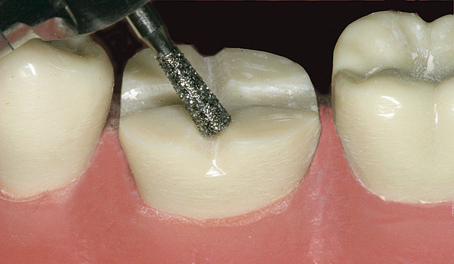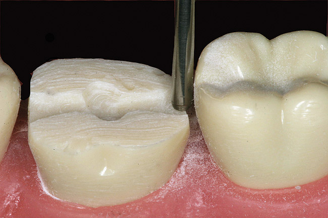 Bonding philosophies have changed over the years from being solely enamel-dependent to the development of systems that rely on the dentin as an additional viable adhesive substrate. The one step in the entire restorative process that has not received much attention is the design of the posterior all-ceramic tooth preparation. The restorative process includes identification of the pathology, proper preparation of the tooth to receive the restoration, and diligent insertion of that restoration. Technology has provided added tools in the caries identification process, and newer bonding adhesives have reduced the technical expertise required to place a sensitive-free restoration, but the tooth preparation has been somewhat overlooked. Most posterior crown preparations today are still based on antiquated cementing techniques. The traditional resistance form and retention form provided by axial wall reduction is still in the minds of dentists while they prepare a posterior tooth for a crown. This is where the confusion lies. Cemented crowns need resistance and retention form while adhesively retained crowns need enamel.1 The tooth preparation should be designed for the restorative material planned and the retentive material that will be used for placement, as opposed to the restorative and retentive materials adapting to the tooth preparation. Removing only the pathology from a tooth and replacing the missing parts of the tooth with a ceramic or industrial-composite material should be a consideration. This would result in less tooth structure likely being removed. The non-retentive, full-coverage “table-top” preparation for posterior metal-free restorations should be considered.