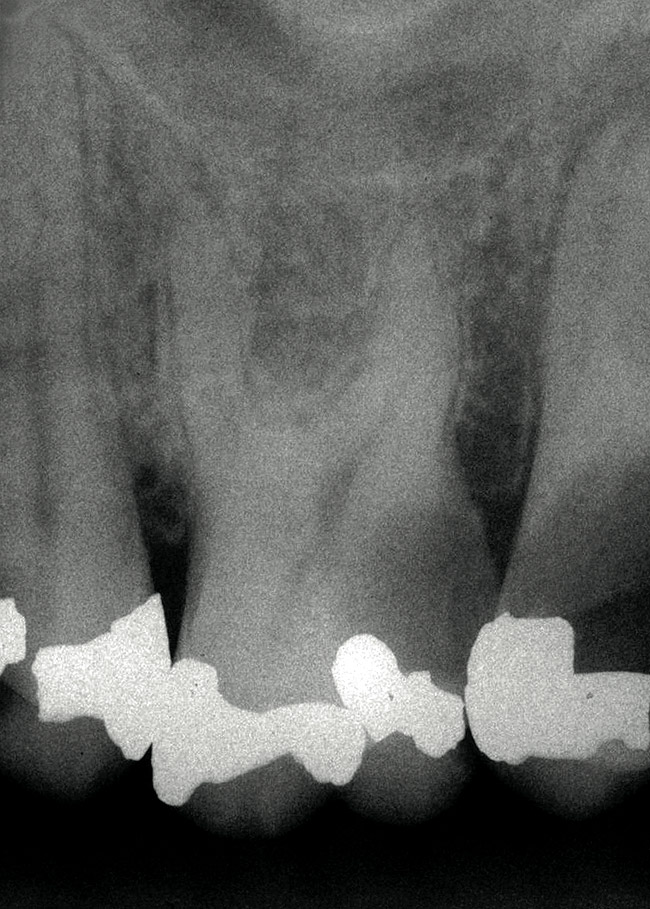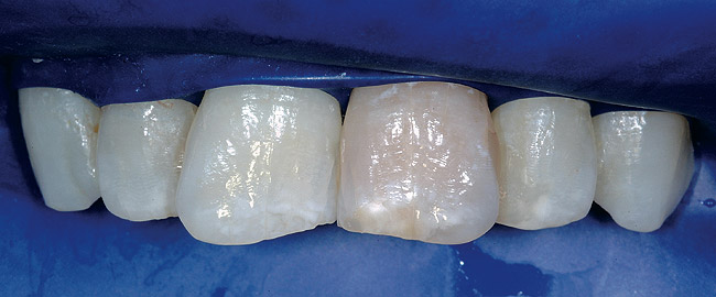 The feature case of this article, highlighted in Figure 13 through Figure 24, demonstrates a comprehensive shift in many aspects of endodontic access. The calcified central incisor ( Figure 13) of a 42-year-old woman was treatment planned for elective endodontics to facilitate internal bleaching for esthetic reasons. The preoperative radiograph demonstrated almost complete obliteration of the pulp, except for a small pouch in the center of the root. Referring these challenging cases to a microscopeequipped endodontist should always be considered. However, many well-trained general dentists attempt these difficult cases, and most dentists routinely deal with partially calcified cases. Still, the concepts forwarded in this case can be employed as indicated in every endodontic access treatment.