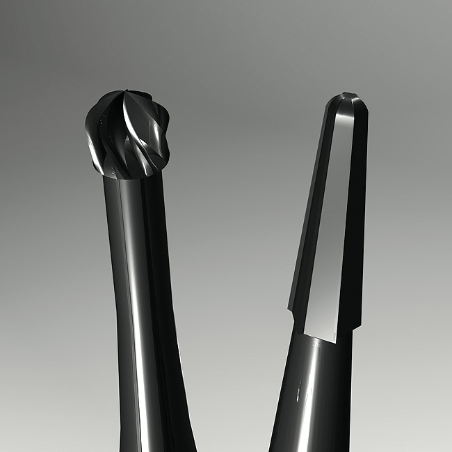 In the final analysis, round burs point cut in an endodontic access application, but planing is necessary. A new set of mental models based on vision is needed, along with a new set of instruments that are reflective of the task at hand and the desired shaping outcomes. The new vision-based mental model is "Look, Groom, Follow." The new burs are all rounded, ended tapers. Round burs tend to cut predictable shaping patterns that do not help the doctor or the tooth. 17