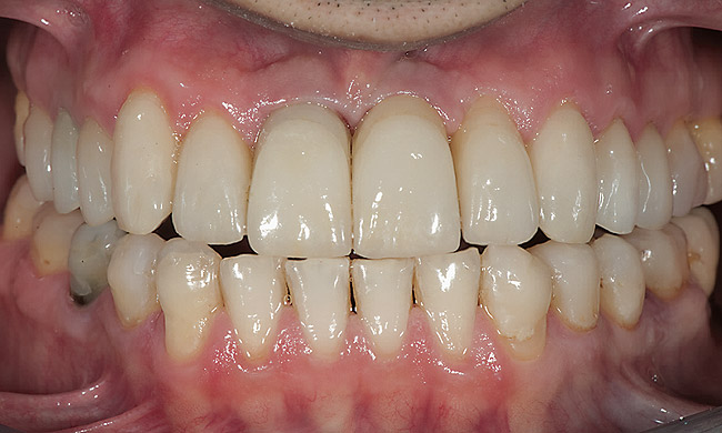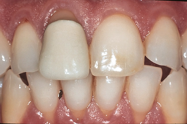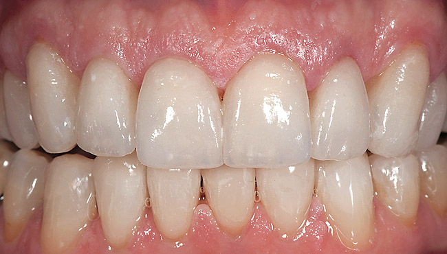 jp). The authors use Vita® VM 13 (Vita Zahnfabrik, www.vita-zahnfabrik.com) when 3-D master shades are taken and Halo (Shofu, www.shofu.com) when classic shades are taken. When following clinical parameters and guidelines at the UCLA Center for Esthetic Dentistry, the authors have observed similar success rates with these materials when compared with porcelain-fused-to-metal (PFM) materials (ie, less than a 1% fracture rate if all parameters are followed) (Figure 5 and Figure 6).