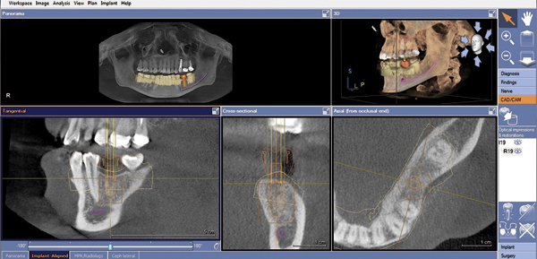 CBCT is an accurate tool for evaluating bone volume. Many CBCT scanners include proprietary digital implant planning software. There are also “open platform” software solutions that can be used with any CBCT data file. These are excellent diagnostic and planning tools and serve as the foundation of the SAFE implant protocol. Using the SAFE implant protocol is possible without direct access to a CBCT scanner or a chairside CAD/CAM system, but dentists with access to integrated CBCT-CAD/CAM systems have a simplified workflow, involving three appointments.
