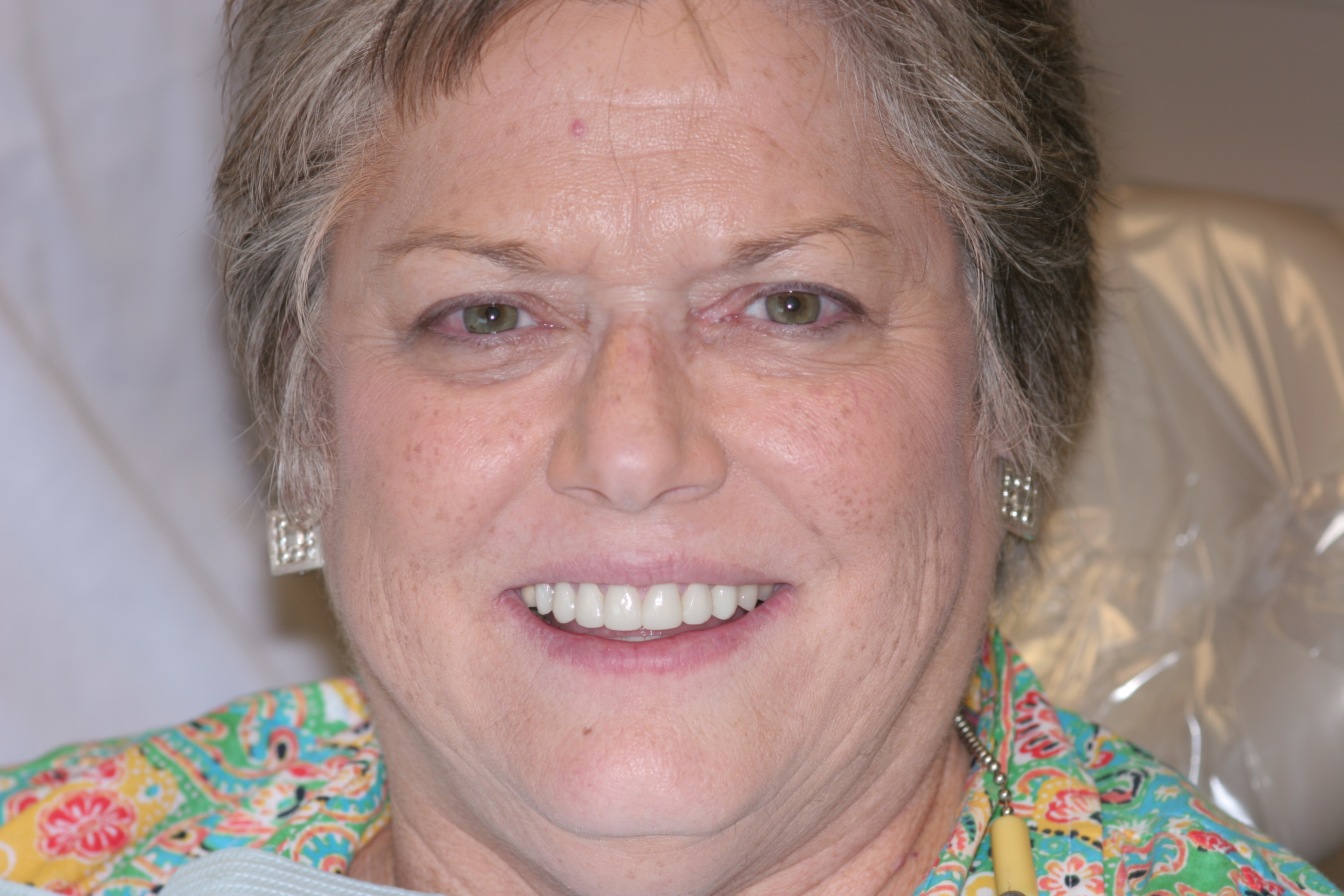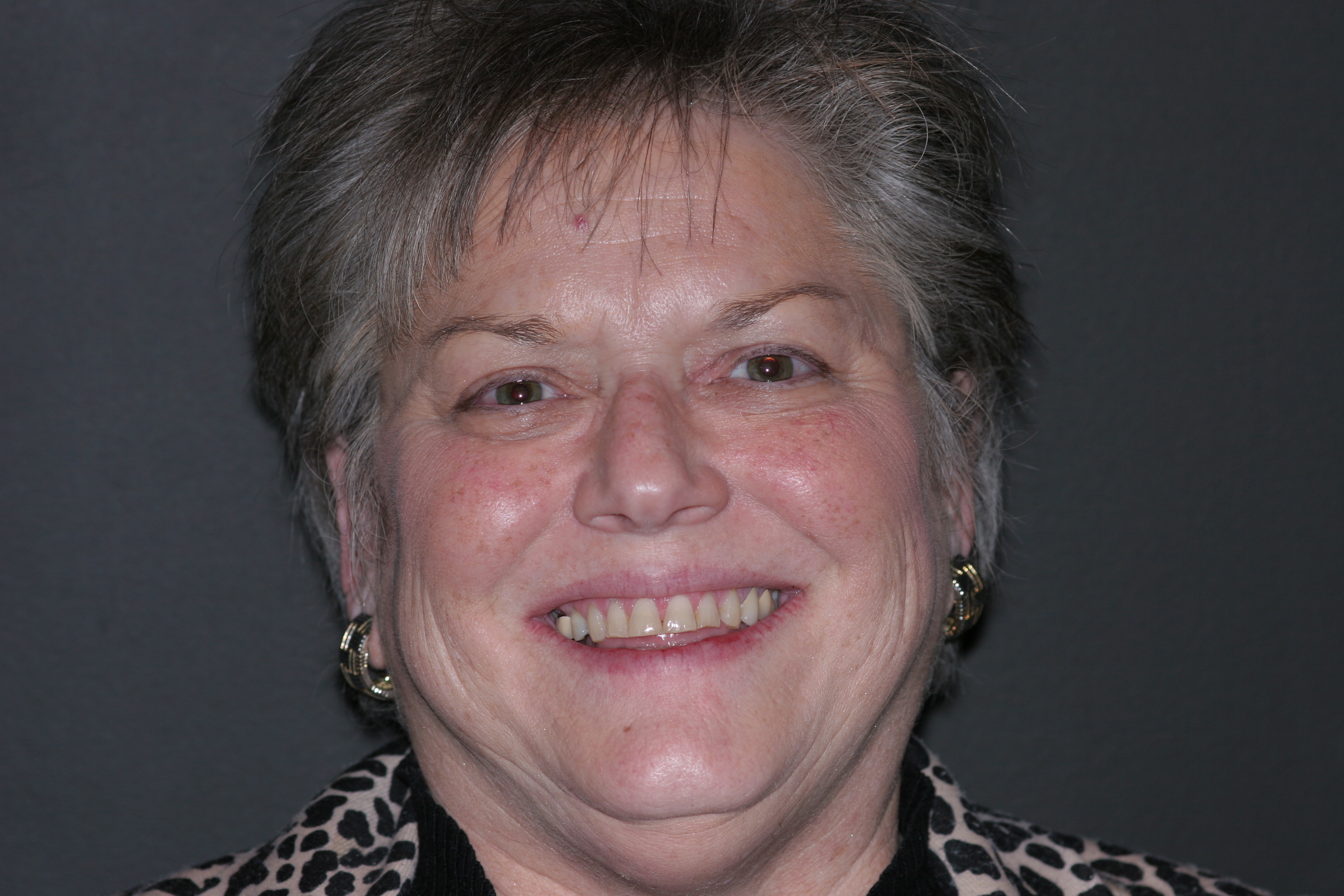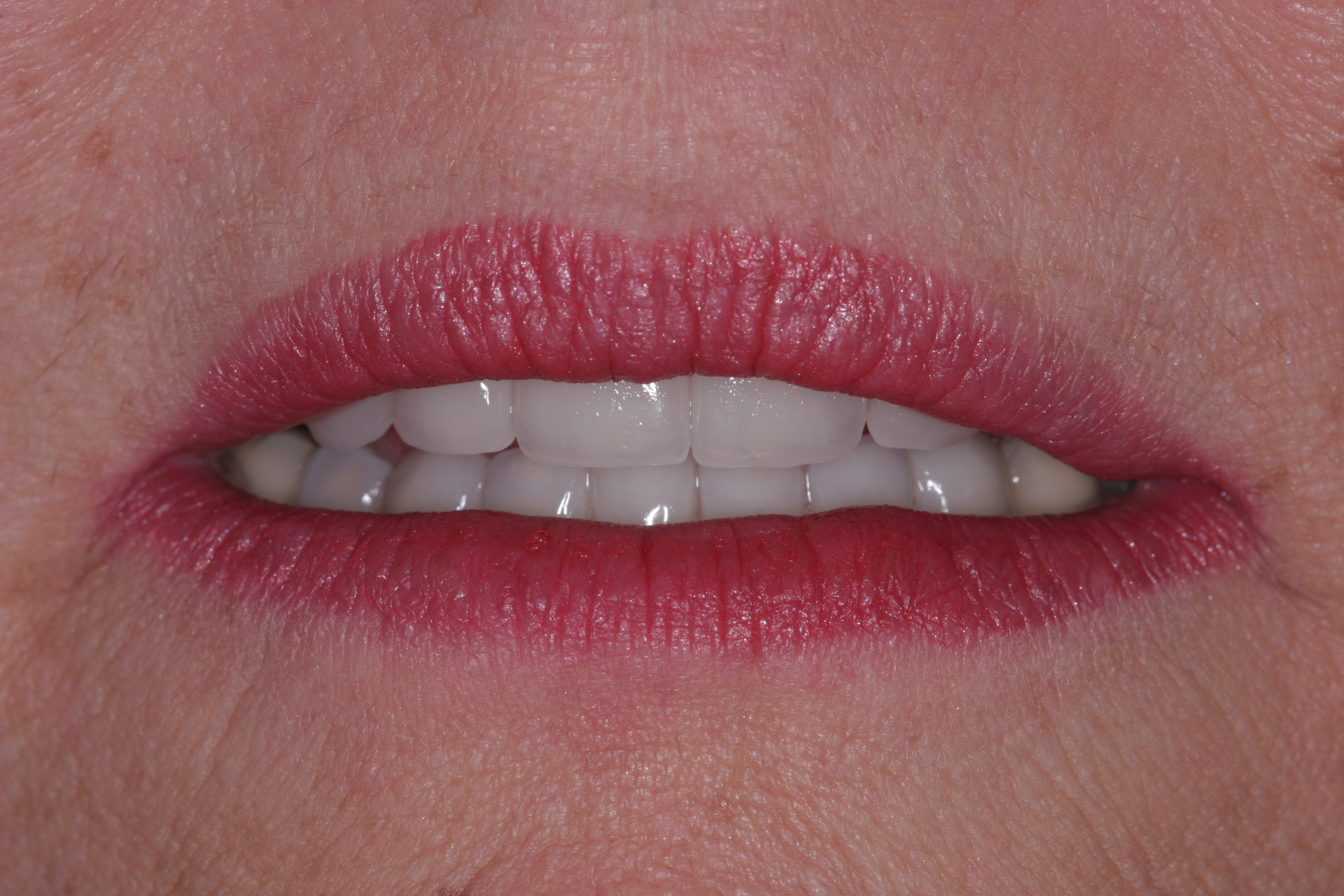 A patient presented with advanced generalized wear of her anterior teeth (Figure 10 and Figure 11). She was displeased with their overall appearance because of their color and wear (Figure 12). A complete examination was performed, revealing instability in her temporomandibular lateral poles bilaterally, sore muscles of mastication, advanced wear, a CR/MIP discrepancy, and loss of her anterior guidance due to the wear. Although the topic is beyond the scope of this article, the patient was also screened for possible sleep apnea. This included an evaluation of the Mallampati score, previous sleep therapy evaluation or treatment, snoring history, an evaluation of her neck size, her weight status, and the presence of the tonsils and their size. In every case, if this clinician suspects airway obstruction to be playing a role in tooth wear issues, the patient is referred to a sleep physician. The patient in this case displayed few apnea risk factors, and the patient’s anterior wear facets fit together like a “lock and key” pattern seen in parafunctional activity. Splint therapy was initiated to stabilize the joints and muscles. A repeatable CR position was verified through load testing. At this point diagnostic models, photographs, a CR bite record, and a facebow were taken and recorded.