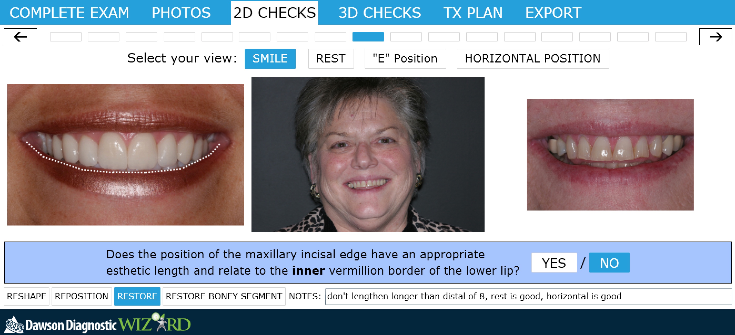 Changes in incisal edge position can only be estimated with a diagnostic wax-up and must be tested with properly contoured provisional restorations. This will verify esthetic, functional, and phonetic success for the patient, and the provisionals will provide a blueprint for the laboratory when creating the final restorations.