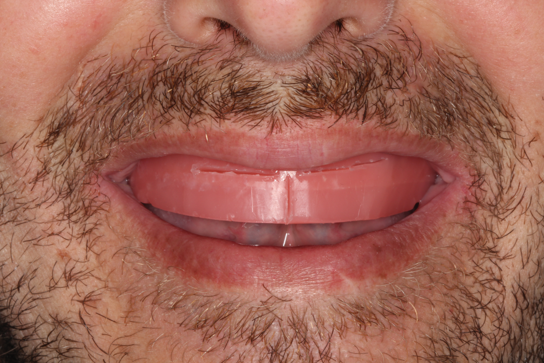 The step-by-step analog approach of fabricating conventional complete dentures has not changed much over the years. Border-molded impressions lead to master casts, upon which baseplates and wax rims are fabricated.3 Excellent communication between the restoring dentist and the laboratory technician is crucial at this stage and often falls short with respect to the anticipated location of anterior teeth, vertical dimension of occlusion, and condylar position. Even with the availability of digital dentistry, it is important for clinicians to be able to obtain the chairside records accurately, evaluate proper esthetics and phonetics, and apply problem-solving for potential mishaps, such as when the teeth are not in the correct position.