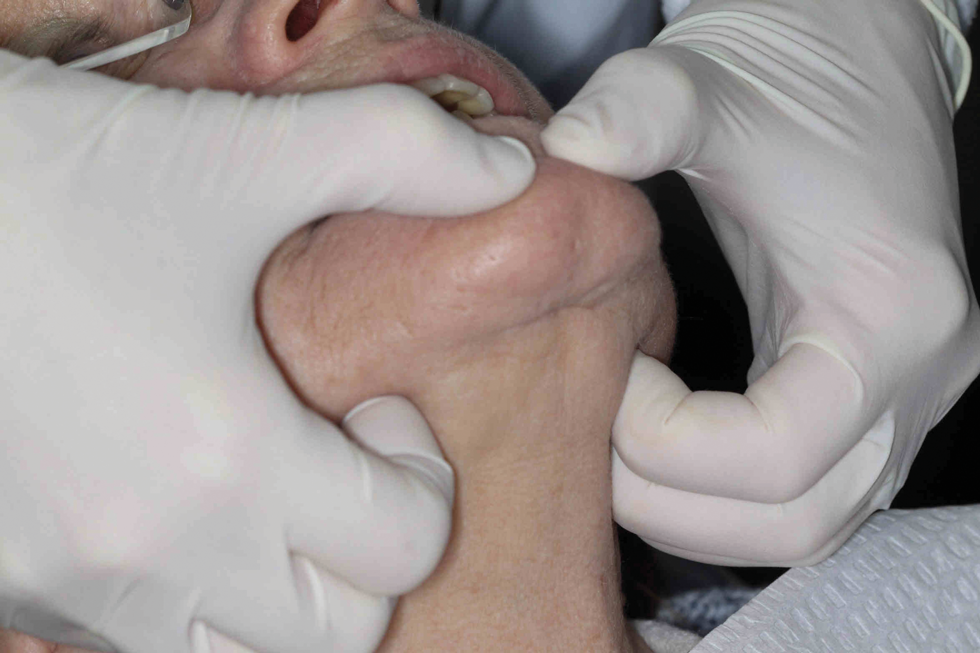 Prior to recording centric relation, it must first be verified by the patient. This is done by bimanual manipulation, loading the condyles with three incremental levels of loading (Figure 6). After each level of loading, the patient is asked if there is any sign of tension or tenderness in either temporomandibular joint. If the answer is no at each level, then the clinician can accept that the patient is in centric relation.12 The wax rims are not inserted into the patient's mouth during verification because centric relation is a jaw-to-jaw position and independent of wax rim position or contact.