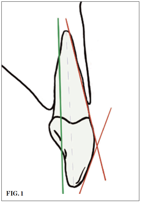 The anatomy of the available bone at an anterior implant site will inform the positioning of the implant as well as the selection of the restoration. An analysis of the sagittal bone volume permits assessment of an individual's bone phenotype and the potential need for grafting.2 In the "triangle of bone" concept, bone volume is analyzed by visualizing a triangle connecting the points at the widest part of the facial bone and the widest part of the palatal bone with a final point that bisects the alveolar crest.3 Evaluating bone volume within this triangle can help to determine the ideal implant position, any grafting requirements, the necessity of placing an angled abutment or cement-retained restoration, and the thickness of the bone that will ultimately be facial to the implant.